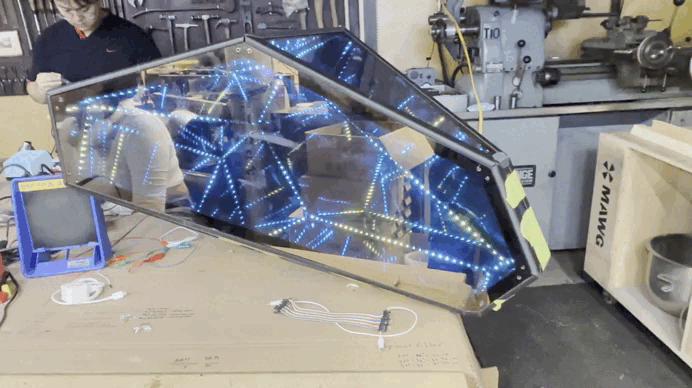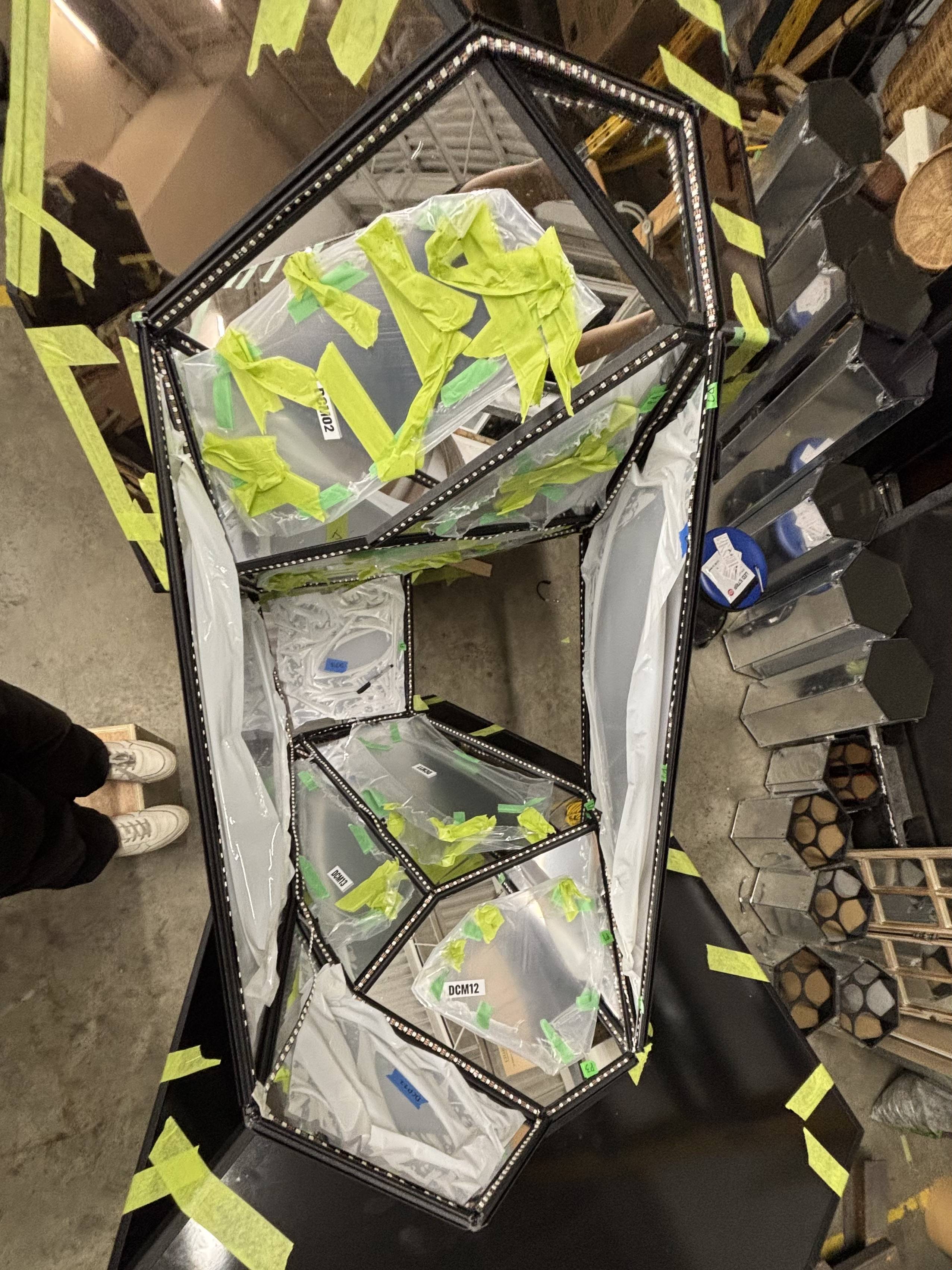 Hired by Awe-Nest & Studio Kotte to work on the Hall of Mirrors Experience (H.O.M.E.), exhibited at Art Bash at the Art Gallery of Ontario. Angelina Almanza and I handled the electrical design, planning, and assembly of the LED’S within the crystal units and behind the kinetic mirrors.