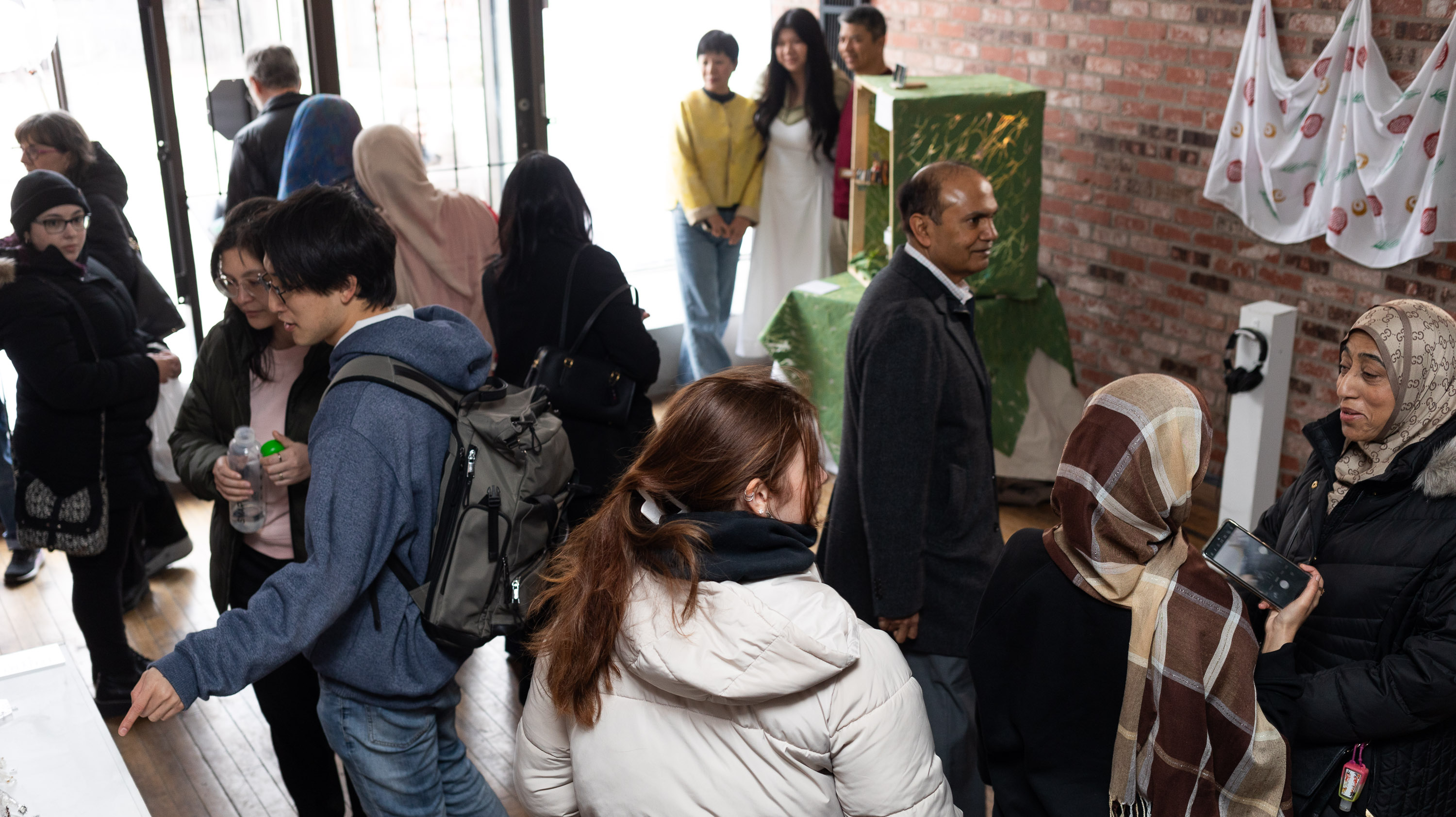 The show ran for a week and a half long in a repurposed storefront (406 Roncesvalles Avenue) from April 16th-25th, 2025. We held an opening night reception, gallery tours for highschoolers, an artist talk panel, a separate listening party for one of the pieces, and regular viewing hours all week from 12-6pm. The show was a major success, with the reception bringing in well over 300+ attendees and following events drawing in 200+ more.