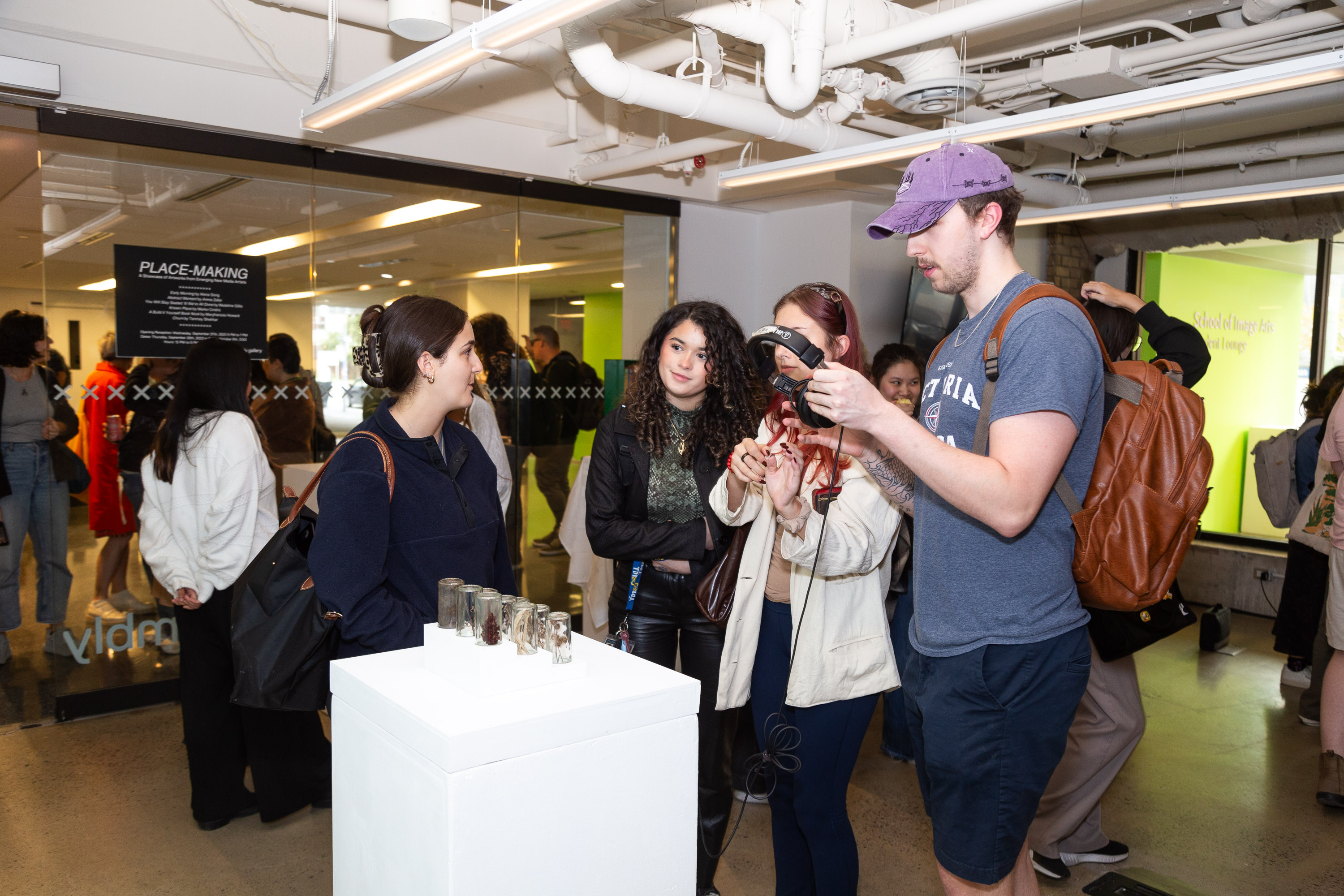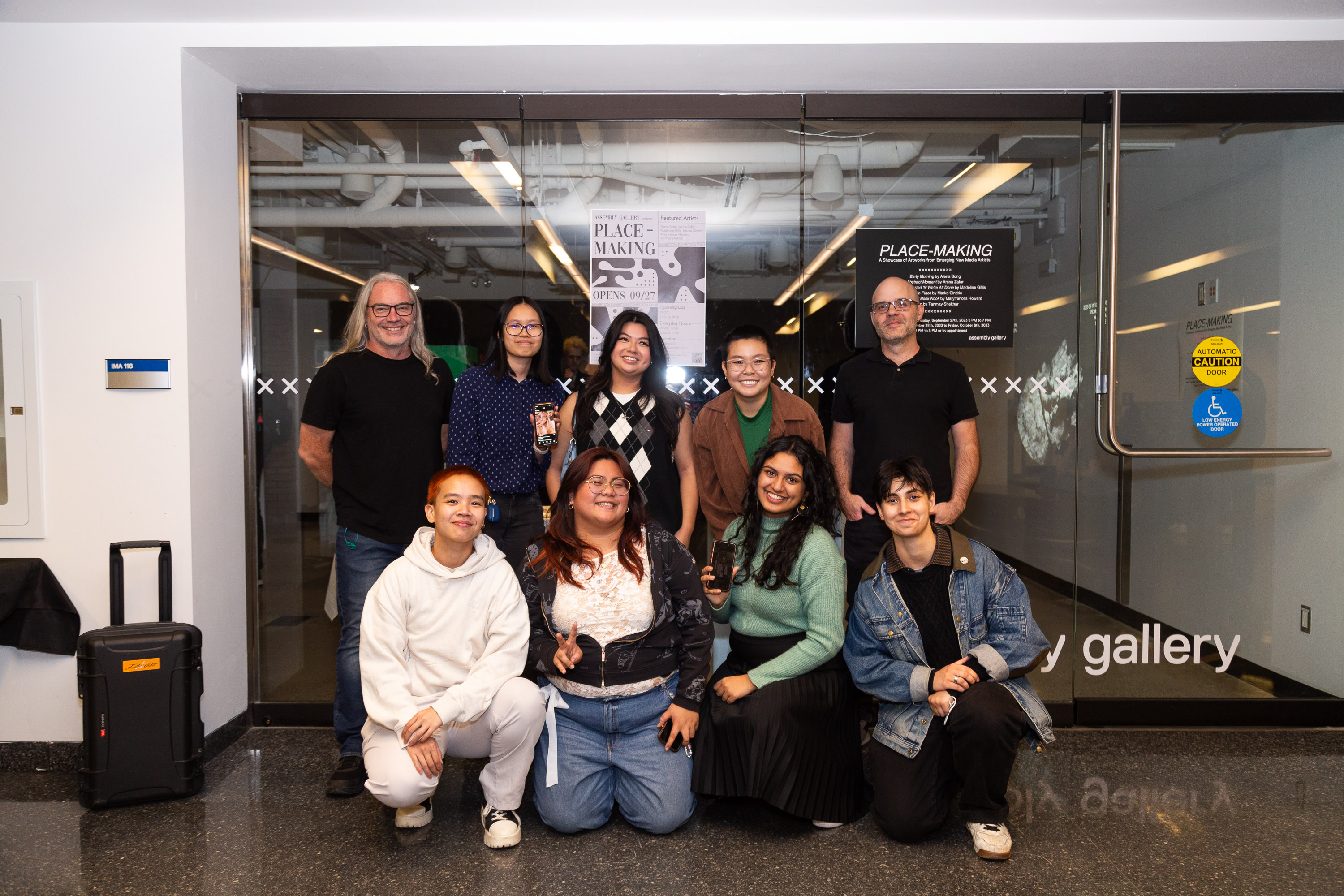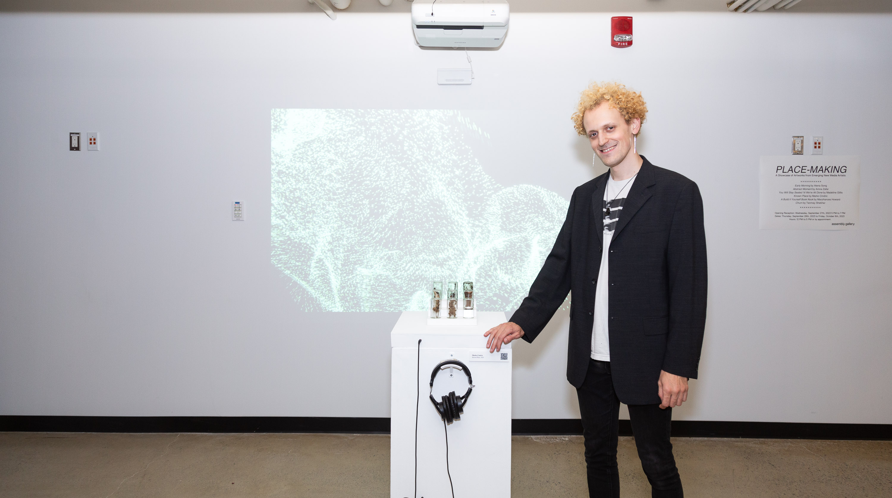 PLACE-MAKING is an exhibition showcasing works from emerging New Media artists from the RTA 501: Studio Practice – Winter 2023 class. The works are a careful exploration of liminality, familiar and unfamiliar spaces within contexts of memory and repetition. Within these spaces, we see nature unfold and healing happen; where we come together to build, discover the sanctity of early morning hours, cover and decorate, or sometimes just watch time spin in circles. In merging art and technology as a form of storytelling, we invite you to interact and experience these sites where the world feels filled with meaning.
